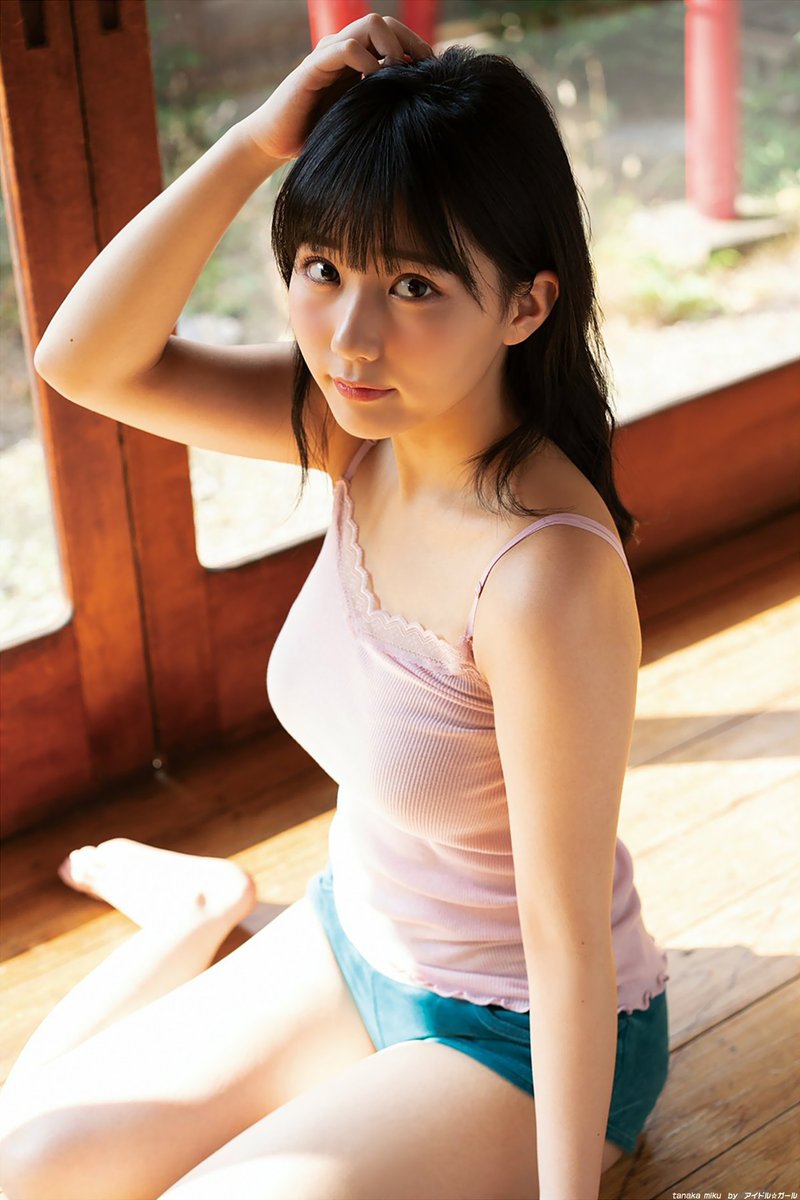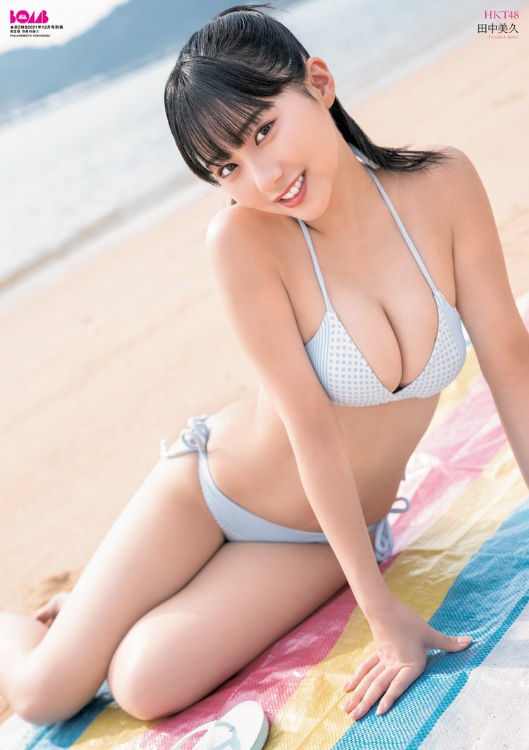 HKT48の田中美久が自身のTwitterで透明感あふれるボブヘアでの初グラビアショットを公開した。